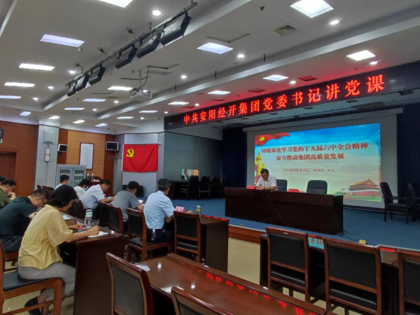 黨課開始前,全體黨員面對黨旗舉起右手,再次發(fā)出錚錚誓言,表達了為黨的事業(yè)奮斗終身的決心和愿望。隨后,齊方董事長從深入學(xué)習(xí)領(lǐng)會黨的十九屆六中全會的重大意義,全面把握全會精神的豐富內(nèi)涵與核心要義,號召全體干部職工積極響應(yīng)黨中央號召,自覺踐行初心使命,迎難而上、實干擔(dān)當(dāng),以史為鑒、開創(chuàng)未來,埋頭苦干、勇毅前行,奮力推動集團高質(zhì)量發(fā)展,建成“一個強市”、實現(xiàn)“八個領(lǐng)先”貢獻經(jīng)開力量。