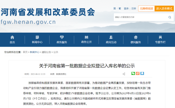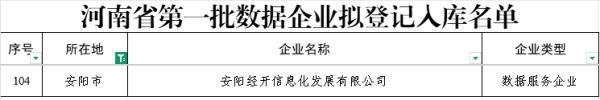 6月11日,河南省發(fā)展和改革委員會公示河南省第一批數(shù)據(jù)企業(yè)擬登記入庫名單。經(jīng)各地和省有關(guān)部門推薦申報、材料審核、專家評審,初步確定安陽經(jīng)開信息化發(fā)展有限公司等數(shù)據(jù)企業(yè)名單。