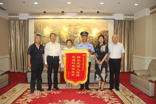 2021年7月28日下午3點,“感謝你們,我這條命是你們撿回來的!”安勤公司員工曹運玲拿著“洪水無情人有情,危難時刻伸援手”的錦旗在市黨政綜合大樓一樓會客室送到市黨政綜合樓保安中隊中隊長戶永豐手中,感謝他們的救命之恩。安陽市機關事務中心、三級調研員陳紹華,機關事務中心、保衛(wèi)科長孫文勝;安陽市安勤商務公司董事長兼總經(jīng)理劉全喜,安勤商務公司副總經(jīng)理王軍;安陽經(jīng)開集團黨委委員副總經(jīng)理劉志霞;洹河保安公司黨委委員、副總經(jīng)理魏東,總經(jīng)理助理、人防分公司經(jīng)理李向陽,參加此次活動。