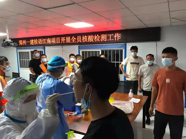 8月7日,綠城項(xiàng)目部在縣防疫要求掃碼基礎(chǔ)上請(qǐng)安陽(yáng)地區(qū)醫(yī)院對(duì)項(xiàng)目所有人員進(jìn)行核酸檢測(cè),包括項(xiàng)目部全體人員、一標(biāo)段總包單位所有管理人員及工人、二標(biāo)及三標(biāo)段總包單位管理人員等近400人進(jìn)行核酸檢測(cè)。