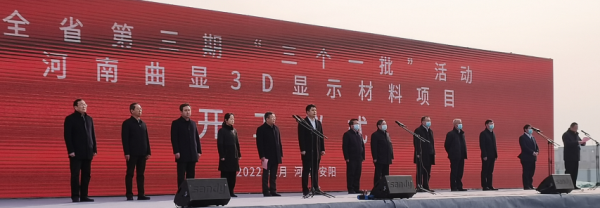 2022年1月4日上午,集團(tuán)副總經(jīng)理溫惠玲陪同市委副書記、市紀(jì)委書記黃明海,市政府副市長王新亭,市政府副市長、安陽縣委書記王紅兵以及河南投資集團(tuán)有限公司、市城鄉(xiāng)一體化示范區(qū)、東旭集團(tuán)、新石器公司等相關(guān)領(lǐng)導(dǎo)前往示范區(qū)參加我市“三個(gè)一批”項(xiàng)目開工儀式。在開工儀式活動(dòng)現(xiàn)場,黃明海書記宣布全市第三期“三個(gè)一批”活動(dòng)暨河南曲顯3D顯示材料項(xiàng)目開工。