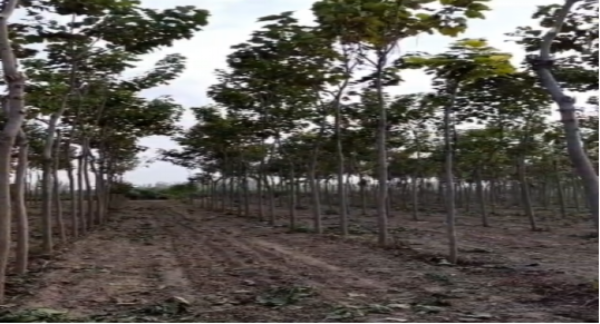 (內(nèi)黃縣三楊莊國儲林項(xiàng)目的租賃區(qū)域內(nèi),承租方種植了丹參與紅花。對林木進(jìn)行適當(dāng)修剪,確保經(jīng)濟(jì)作物能夠獲得更好的生長環(huán)境。)