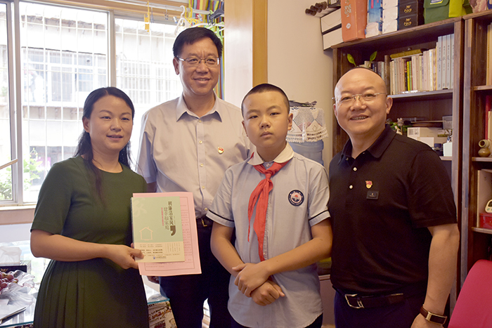 家訪過程中,陳文雙詳細了解了張曉峰的家庭情況,翻閱了孩子的作文集和游記,了解孩子的學習情況,在得知孩子已經(jīng)擔任了4年云南省博物館的志愿講解員,并聆聽了孩子現(xiàn)場背誦《兵車行》后,一再感嘆:“你們把孩子教育得很好!”