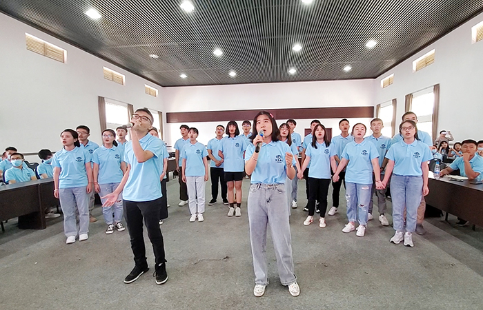 “你好,我們一起唱歌吧”是他們對(duì)新伙伴提出的邀請(qǐng),也是一段職業(yè)生涯友誼的開(kāi)始。入職前,新員工們被分為10個(gè)小組,報(bào)名參加才藝表演的他們利用課余時(shí)間抓緊彩排練習(xí)。