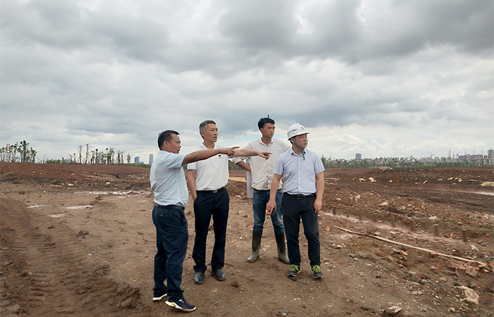 王楷銀和陳芝軒查看了項目現(xiàn)場并對下一步工作提出要求:一是近期暴雨天氣導致項目進度受到影響,項目部要重排計劃,保證“6·30節(jié)點”如期完成;二是根據(jù)目前一周內的天氣情況,務必要在下周二之前完成假山造型土方轉運攤鋪,完成棧道、觀鳥亭、小廣場和景觀墻的混凝土結構;三是要迅速完成喬木、灌木進場,確保綠植工作大干快上;四是要合理組織安排勞動力和機械,確保有工作面、有勞動力,保質保量如期完成剩余工作。