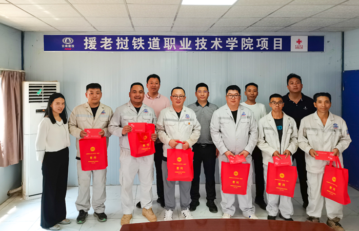 在援老撾鐵道職業(yè)技術(shù)學(xué)院項(xiàng)目,付雋蒼一行聽取了工程建設(shè)情況,組織召開座談慰問會(huì),對老撾?yún)^(qū)域多年來所取得的成績和疫情期間職工的堅(jiān)守崗位、逆行出征、敬業(yè)精神以及職工家屬的理解和支持給予肯定和感謝。并將公司工會(huì)的《慰問信》、“送清涼”慰問品送到每個(gè)職工手上。