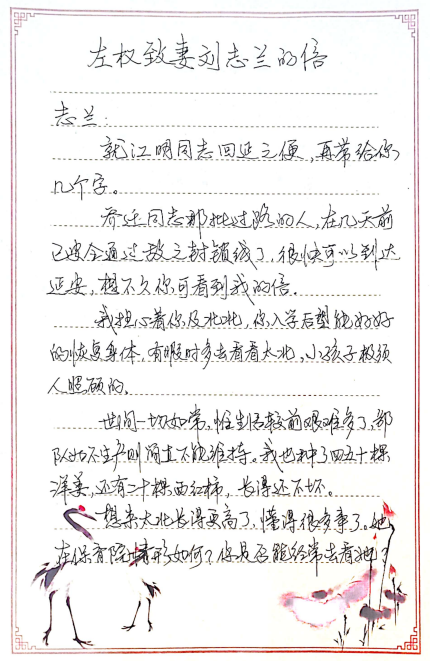 左權(quán)致妻劉志蘭的信