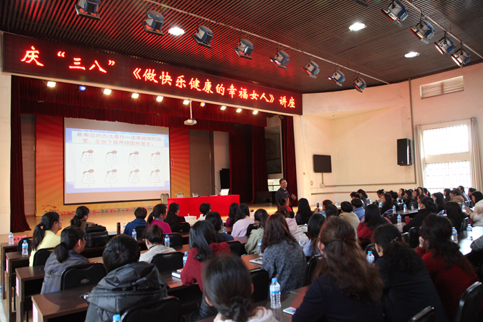 會上邀請了云南省演講學(xué)會常務(wù)理事、云南省家庭教育講師團(tuán)成員、二級心理咨詢師朱景忠教授為大家?guī)砹艘粓鰟e開生面的《做快樂健康的幸福女人》專題講座。講座內(nèi)容包括傳承孝親愛老的家庭美德、涵養(yǎng)愛家愛國的家國情懷、科學(xué)教子的理念與方法、掌握夫妻平等和諧的相處藝術(shù)等四個方面,旨在提升女職工的自信度與幸福感為目的,引導(dǎo)女職工在生活和工作中塑造積極向上、快樂健康的女性形象。朱景忠教授用幽默風(fēng)趣的語言,旁征博引地給大家?guī)砹艘粓鲂β暡粩?,同時也讓人回味自省的講座。