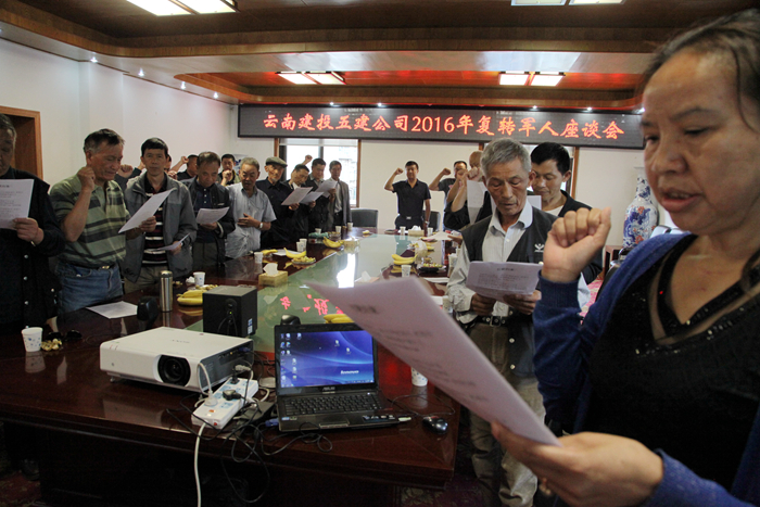 這些復轉軍人大部分為離退休職工,在了解了集團整合重組及更名情況后,大家一同觀看了集團最新制作的宣傳片,進一步了解了集團“大重組、大整合、大融合、大發(fā)展”的相關內容。為了表達對企業(yè)一直以來的牽掛和熱愛,大家還一起學唱了《建投之歌》。