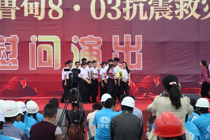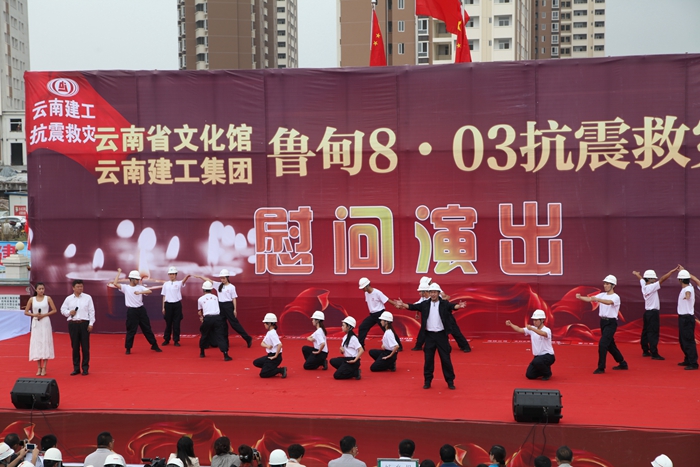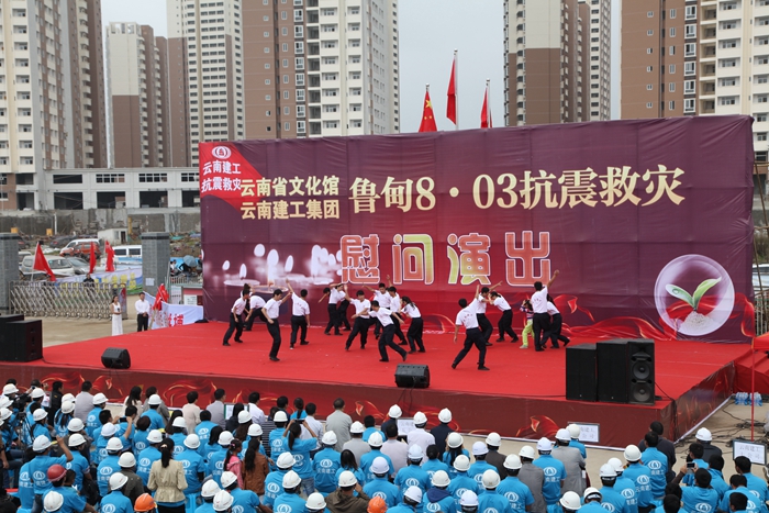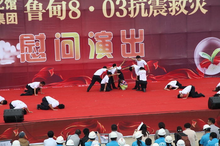 9月20日,集團與省文化館在昭通市昭陽區(qū)2012年保障房項目部聯(lián)合舉辦的抗震救災(zāi)文藝演出。慰問演出中,參演節(jié)目精彩紛呈,舞蹈、獨唱、小品、雜耍等節(jié)目各具特色,彰顯了建工人高原鐵軍的精神。