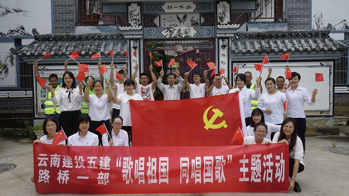 “我和我的祖國,一刻也不能分割……”悠揚(yáng)的音樂聲響起,路橋一部二線員工舞動著五星紅旗,走出辦公室,在直管部門前集合,齊聲合唱《義勇軍進(jìn)行曲》《建投之歌》和《我和我的祖國》。8月15日,路橋一部直管部所在地及各項(xiàng)目部駐地開展了“歌唱祖國,同唱國歌”主題活動,寧蒗、施甸、麗江、大理、昆明,幾個(gè)項(xiàng)目部與直管部異地同音,用自己的歌聲唱出了對祖國的美好祝愿。