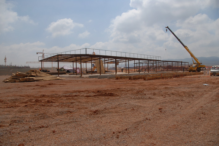 A3 臨設(shè)施工進行中。背景是先期開工、已在進行主體結(jié)構(gòu)施工的航站樓工程。
