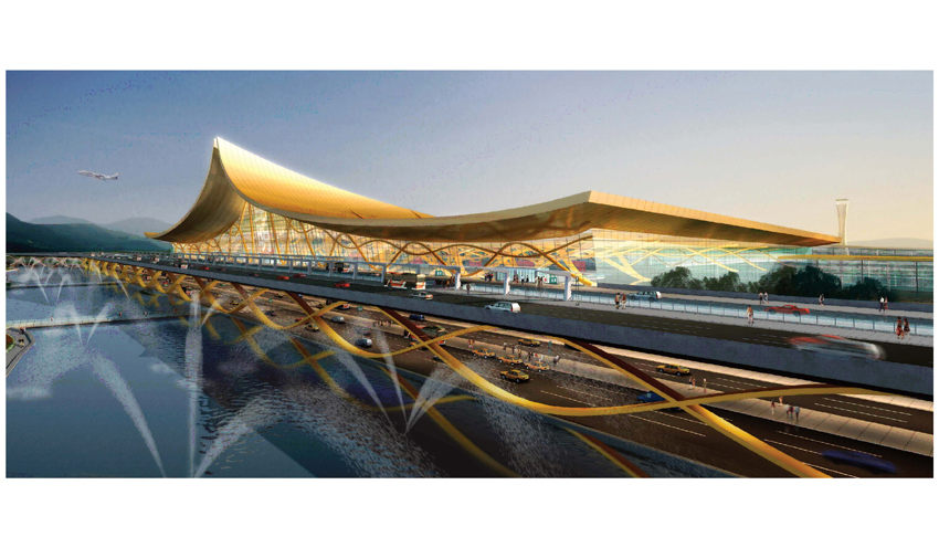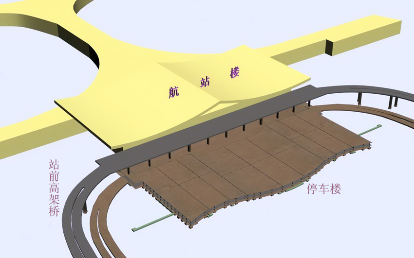 機(jī)場航站樓前停車樓及站前高架橋示意圖