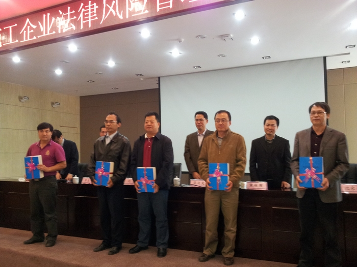 集團(tuán)公司總經(jīng)理劉勇,黨委副書記、紀(jì)委書記張戰(zhàn)國,云南省司法廳法制宣傳處處長梁俊友及國資委政策法規(guī)處處長李志明為集團(tuán)各公司發(fā)放了匯編有云南建工集團(tuán)二十個(gè)典型案例以及建設(shè)工程法律實(shí)務(wù)研討的《施工企業(yè)法律風(fēng)險(xiǎn)管理》一書,并請(qǐng)建緯(昆明)律師事務(wù)所律師為參會(huì)人員進(jìn)行了一場主要針對(duì)施工企業(yè)法律風(fēng)險(xiǎn)管理的“六五”普法專題講座。