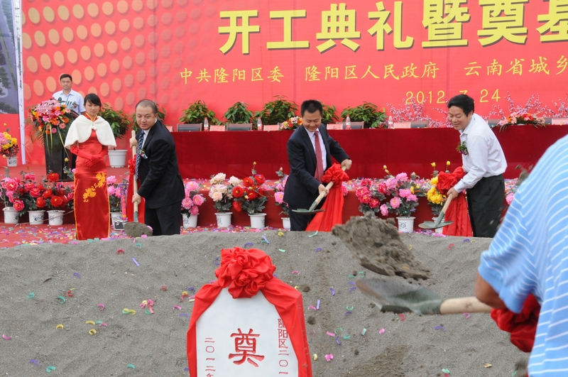 7月24日,保山市隆陽區(qū)2012年保障性住房建設(shè)項(xiàng)目舉行開工奠基儀式,保山市委常委,市政法委書記趙德光,集團(tuán)公司黨委副書記、紀(jì)委書記張戰(zhàn)國(guó),集團(tuán)公司總經(jīng)理助理、城鄉(xiāng)建投公司董事長(zhǎng)等領(lǐng)導(dǎo)出席奠基儀式,并共同為項(xiàng)目開工培土奠基。公司董事長(zhǎng)楊福和,公司黨委書記、城鄉(xiāng)投保山分公司(指揮部)總經(jīng)理李文智,公司總經(jīng)理魏華等班子成員參加儀式。
