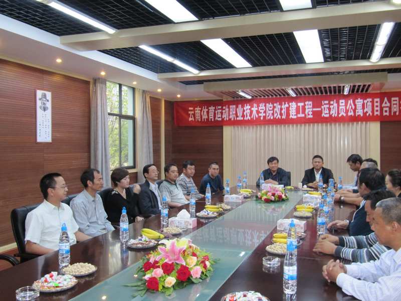 該工程的簽訂得到了云南省體育局和公司領(lǐng)導(dǎo)的重視,合同簽訂當(dāng)天,省體育局局長沈俊鑌、建管中心主任曾延成、學(xué)院黨委書記兼院長李錫云及院領(lǐng)導(dǎo)班子,公司董事長楊福和、總經(jīng)理魏華、副總經(jīng)理張迎躍、經(jīng)營部負(fù)責(zé)人及直管部領(lǐng)導(dǎo)班子全部到場參加。沈俊鑌局長在簽訂儀式上表示,與五公司合作的第一個(gè)項(xiàng)目——云南體育運(yùn)動(dòng)職業(yè)技術(shù)學(xué)院教學(xué)大樓項(xiàng)目,得到了省體和學(xué)院的一致好評,所以有了第二次的合作,同時(shí)他表示,希望與五公司建立長期合作關(guān)系。楊福和也表示,無論項(xiàng)目大小,五公司都會(huì)以精品工程的要求去完成,一如既往地交上滿意答卷。