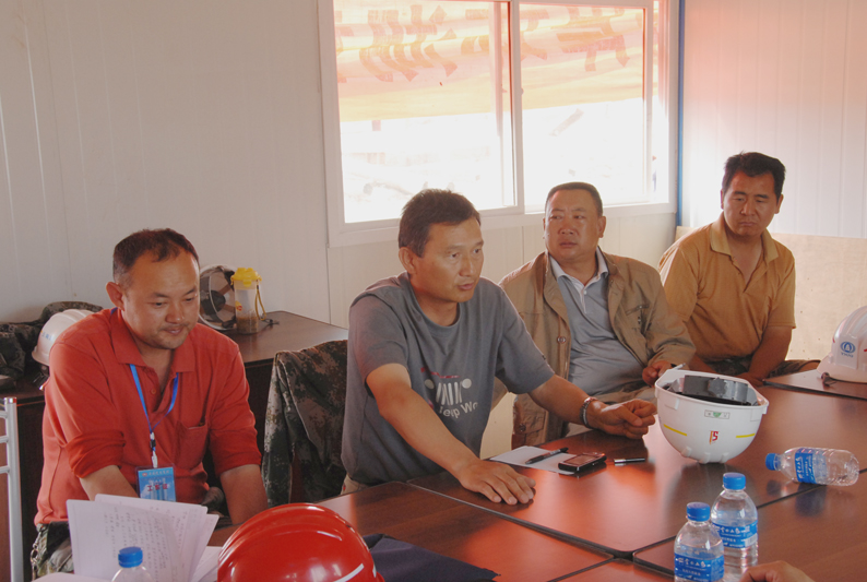 公司副總經理兼第三直管部經理段培勇介紹了工程施工組織管理情況。該工程的工期十分緊張,從4月6日根據(jù)建工集團要求緊急進場增援施工以來,五建公司第三直管部、五建市政工程公司以及近日進場的503直管部一直晝夜施工,連續(xù)奮戰(zhàn),沒有休過一天的節(jié)假日。工程場地非常狹窄,幾乎天天都要為尋找堆土場地費盡心思,還要花費大量精力協(xié)調與當?shù)卮迕竦年P系。在整個工程施工中,不僅與集團內兄弟單位展開無形中的勞動競賽,而且還要與國字號的專業(yè)隊伍同臺競技。參建同志決心為公司和集團榮譽全力一搏,以優(yōu)秀的建設業(yè)績報答上級的信任。針對施工現(xiàn)場地處低洼排水不暢、淤積泥土極其松軟的地質條件,提出了分工合作、協(xié)同作戰(zhàn),搶在雨天到來之前全力拼搏搶進度的工作思路。
