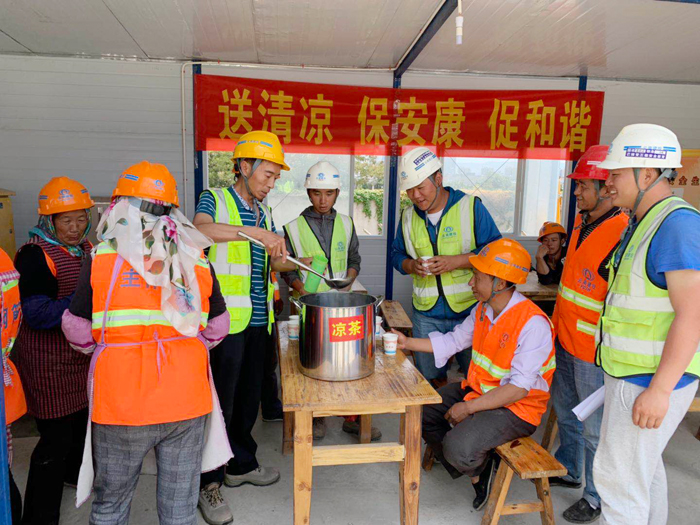 近日,氣溫持續(xù)高升,酷暑難耐,曲靖棚改項(xiàng)目部及時(shí)為現(xiàn)場(chǎng)的管理人員和工人們送上涼茶,并備好了防暑降溫的藥品。 工會(huì)主席斗未酬要求項(xiàng)目部落實(shí)好高溫天氣作業(yè)安全防范措施,切實(shí)做好當(dāng)前防暑降溫工作,科學(xué)安排作業(yè)時(shí)間。同時(shí)囑咐大家要注意休息,勞逸結(jié)合,防止中暑,確保人身安全。 炎炎夏日送清涼,絲絲關(guān)愛入心田。一份清涼,一份關(guān)懷,送清涼不僅送去了組織的清涼和關(guān)...