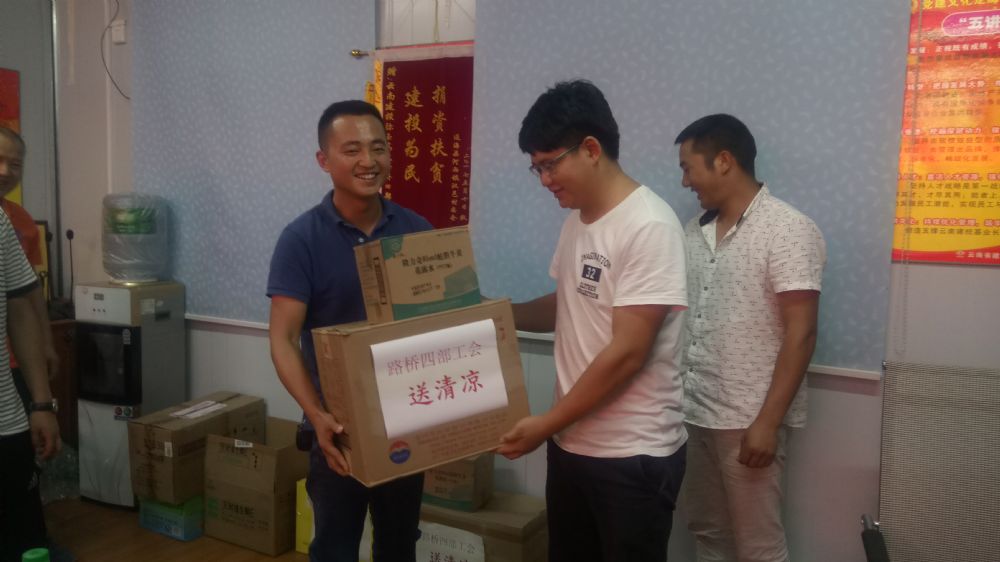 6月21日,路橋四部工會主席萬文在彌玉高速公路象山段項目部開展“夏日送清涼”活動。 萬文對項目部全體員工和一線班組人員的辛勤工作表示關懷,并再三叮囑員工在夏季高溫作業(yè)時,要注意防暑降溫,在酷暑期間作業(yè)應注意采取有效的防暑措施,加強自我防護意識,避免疲勞上崗。今夏的慰問品,從實用、方便攜帶等方面綜合考慮,為奮戰(zhàn)在基層的技術同事和班組作業(yè)人員準備了人手一份的清涼降暑的涼茶、驅蚊物資和...