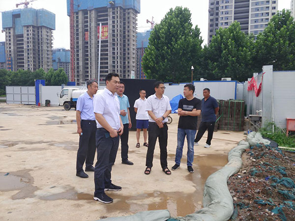 7月23日上午,集團領導齊方、周光明、張博一行第一時間來到上禾園項目工地,詳細了解了項目的排水、用電設備運行、施工等情況。