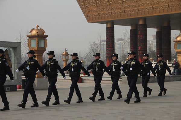 中國文字博物館特保大隊(duì)女子中隊(duì)執(zhí)勤中。
